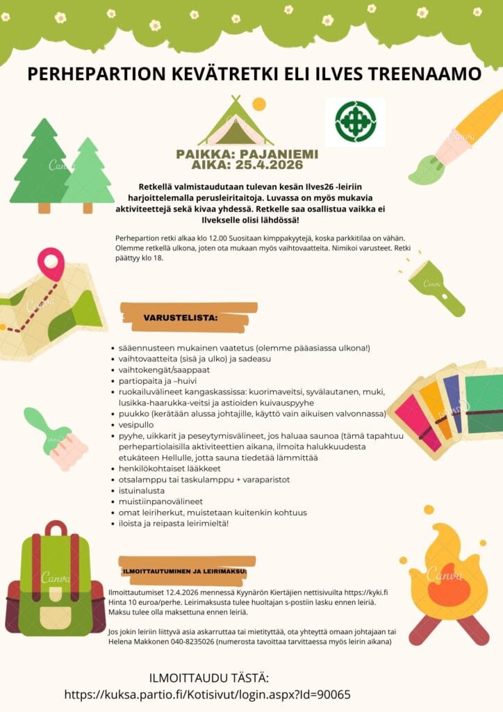 Perhepartion ilmoittautuminen: https://kuksa.partio.fi/Kotisivut/login.aspx?Id=90065